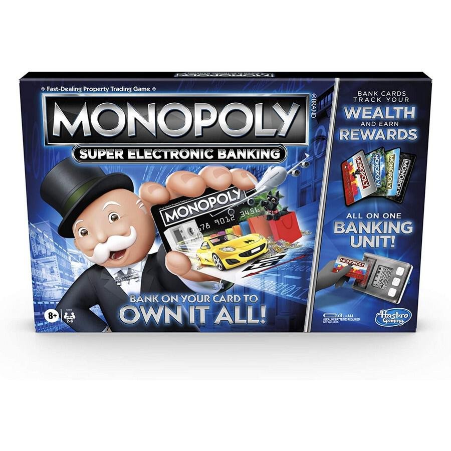 – Monopoly Super Electronic Banking is a version of the classic Monopoly board game that replaces traditional paper money with an electronic banking unit and individual player cards.