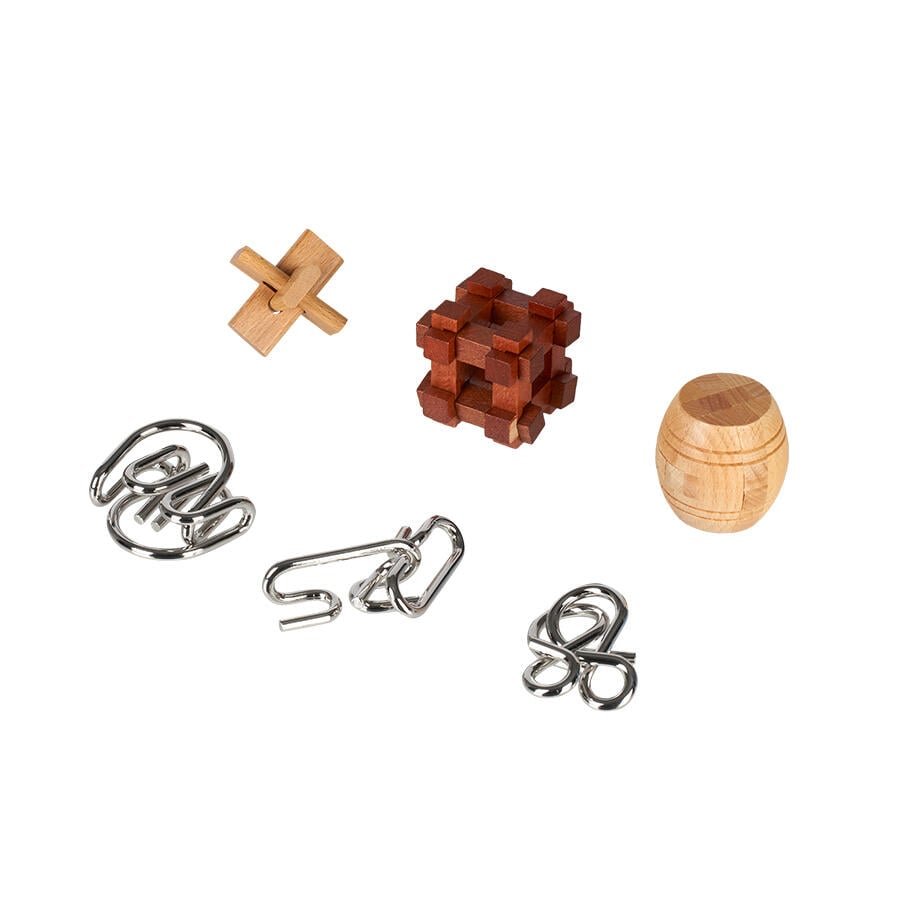 – The Playpop Brain Teaser Puzzle Set is a collection of wooden and metal puzzles designed to challenge players with their ingenuity and focus.