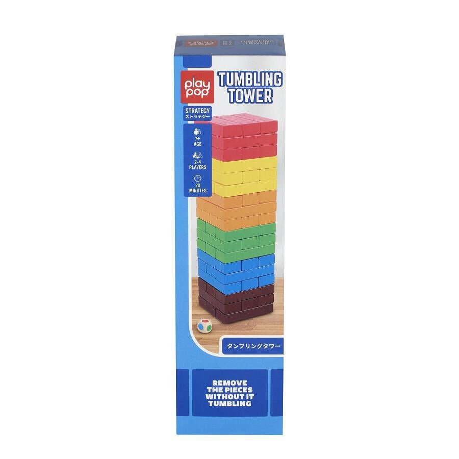 – The Playpop Tumbling Tower game is a skill and strategy game where players take turns removing wooden blocks from a tower and placing them on top, trying to avoid making the tower fall.